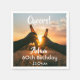 Una servilleta para una fiesta de cumpleaños número 60 para un hombre. Foto de dos manos sosteniendo botellas de cerveza contra la puesta de sol de la noche. Guarda la foto o agrega la tuya. Con el texto: Saludos a, plantillas para un nombre de 60 años y una fecha. Fecha de nacimiento o fecha del fiesta.
