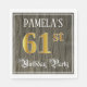 Este elegante y opulento diseño de pañales de papel temático para el cumpleaños incluye un nombre personalizado y el mensaje "Fiesta del cumpleaños número 61". El gran número "61st" tiene un patrón de color inspirado en el oro de imitación/imitación, y las palabras "Birthday Party" están en un elegante texto estilo guión. El fondo presenta un patrón falso/imitación inspirado en los granos de madera. Unas servilletas de papel lujosas y bonitas como esta podrían ser usadas en una fiesta de cumpleaños que se celebra para honrar el 61 cumpleaños de alguien. [~Z0000566]