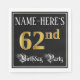 Este lujoso y ornamentado diseño de servilletas de papel con temática de cumpleaños incluye un nombre editable y el mensaje "Fiesta de cumpleaños número 62". El gran número "62nd" tiene un patrón de color falso/imitación de inspiración dorada, y las palabras "Birthday Party" están en un texto opulento de estilo guionista. El fondo es negro de color de forma predeterminada (aunque se puede personalizar). Unas servilletas de papel opulentas como esta podrían ser útiles en una fiesta de cumpleaños/celebración que se celebra para celebrar el 62 cumpleaños de alguien. [~Z0000565]