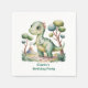 Un divertido y colorido diseño de fiesta de cumpleaños con adorables dinosaurios personalizados en tonos verdes y azules, rodeados de globos, confeti y hojas prehistóricas. Perfecto para una celebración temática de los dinosaurios de un niño, este animado ilustracion le da un toque lúdico y aventurero a la decoración fiesta, invitaciones o carteles de bienvenida.