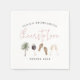 Inicia la fiesta con estas adorables servilletas personalizadas que son fáciles de personalizar para tu fiesta de despedida, noche de soltera o fin de semana de chicas. El diseño boho de estilo viñedo presenta ilustraciones delicadas de acuarela de sandalias, una palmera, copas de champán y vino tinto con letras de acento rosa polvoriento. Personaliza con tres líneas de texto personalizado; se muestra con el nombre del evento, "brindis por el amor", y la ubicación y fecha.