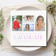 Simple Script Multi Photo Graduation Party Paper Napkins Tableware incluye cuatro de tus fotos favoritas de tu graduado universitario o de secundaria con el elegante y moderno guión de caligrafía morada "Graduate" overlay. Personaliza con nombre, clase y escuela o universidad. Sencillo, elegante y elegante. Creado por ©Evco Studio www.zazzle.com/store/evcostudio