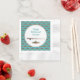 Calabazas de papel de fiesta de retiro de pesca con texto. Imágenes de trucha de pescado y varillas y carretes decoran las servilletas que vienen en muchos tamaños y estilos. Personaliza con letras grandes en la parte superior que dicen: "Feliz retiro (nombre)". Se imprime una imagen de biela y carrete y una imagen de trucha bajo el texto. El borde es un patrón de trucha moteada sobre un color turquesa. Tenemos placas de papel que hacer coincidir.
