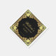 Elegante diseño negro y dorado con aire vintage, recomendado para un fiesta jubilado, con un marco de Relieve metalizado de imitación dorada con elegantes decoraciones barrocas sobre fondo negro. El texto tiene un color dorado similar al del marco falso dorado. El nombre está escrito en un guión elegante, la ocasión bajo él en mayúsculas y la fecha en la parte inferior, en pequeñas tapas. El marco vintage, ornamentado, se basa en un enlace de portada de libros antiguos franceses, de Georges Mercier (1885-1939) - Madame de Maupin por Theophile Gautier, edición 1911, ahora de dominio público.