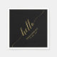 Añada detalles elegantes a su día especial con esta servilleta fiesta personalizada. Este diseño presenta una tipografía elegante "hola" en el tema del color oro y negro. Puede personalizar el texto para cualquier evento o fiesta. En mi tienda BaraBomDesign hay disponibles invitaciones y suministros para fiestas coincidentes.