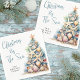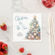 Celebra la temporada con esta servilleta de fiesta festiva y playera, perfecta para una celebración de Navidad junto al mar. El diseño presenta un caprichoso árbol de Navidad hecho de conchas de playa, estrellas de mar y coral en el lado derecho, agregando un toque costero divertido a la configuración de tu mesa. La paleta de colores general incluye tonos de azul turquesa y beige, creando un ambiente relajado y aireado.