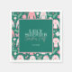 El Fiesta Napkin, Navidades suéter feos, presenta un ambiente atrevido y elegante, combinando una temática botánica y retro con una combinación de tonos rosa pastel y verde. El fondo es un bosque verde rico y profundo, lo que crea un sorprendente contraste para los elementos más ligeros y juguetones de la parte superior. En el centro, las palabras "Suéter feo" destacan en un divertido tipo de letra con un tejido de suéter, que se asemeja a un patrón acogedor y peculiar. Este tipo de letra es rosa pastel, diseñado para imitar la textura del material suéter real, haciendo que las letras parezcan "tejidas" en la invitación. Justo debajo, las palabras "Navidades Fiesta" están escritas en un guión elegante y fluido, en un color verde claro del bosque. Este guión agrega un toque sofisticado, aunque caprichoso, equilibrando el peculiar tema del suéter con un toque de refinamiento.