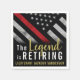 Este diseño cuenta con una bandera de los bomberos con rayas blancas y negras y una delgada franja de línea roja. El texto "La leyenda es agotadora" se encuentra por encima del nombre del bombero, teniente o jefe de las fuerzas de seguridad que se retira. ¡Celebren con estilo!