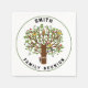 Divertidas y fáciles de personalizar pegatinas de regalo de reunión familiar, etiquetas de favor de fiesta y sellos de sobre con árbol genealógico lleno de pájaros de dibujos animados. Para personalizar, edite el texto para agregar nombre y año.