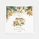 Servilletas personalizadas para fiesta de té de desposada temática de invierno de Navidad, taza de té con copos de nieve, poinsettia y galletas, ramas de pino, fuente moderna y casual, servilletas para fiesta de desposada de invierno