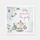 Servilletas personalizadas de fiesta de té floral de acuarela azul francés, plantilla de servilletas personalizadas para decoración de mesa