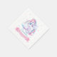 Las servilletas fiestas a una mágica fiesta de cumpleaños con un adorable unicornio con alas en las nubes sobre un fondo arcoiris.