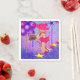 Las servilletas fiestas occidentales con un bebé vaquero de color rosa sobre un caballo de palo. Fondo púrpura con globos, serpentines y estrellas. Este diseño está disponible en otros elementos del Rodeo Days Store.