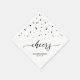 Esta servilleta de papel personalizado le añadirá un detalle elegante a su día especial. Este diseño presenta elegantes letras de guiones con "vítores" con fondo de confeti hexagonal. Decoración fiesta perfecta para una fiesta de cumpleaños moderna de temática negra y plateada. En mi tienda BaraBomDesign hay más invitaciones y suministros de fiesta a juego.