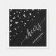 Esta servilleta de papel personalizado le añadirá un detalle elegante a su día especial. Este diseño presenta elegantes letras de guiones con "vítores" con fondo de confeti hexagonal. Decoración fiesta perfecta para una fiesta de cumpleaños moderna de temática negra y plateada. En mi tienda BaraBomDesign hay más invitaciones y suministros de fiesta a juego.