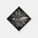 A delicate floral‑geometric mandala rendered in fine white lines on a black background. The detailed symmetry adds a sophisticated and modern touch to any table setting.
