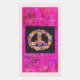 Esta toalla de papel tiene un signo de paz floral en tonos rosa, agua, amarillo lavanda, naranja, morado, verde y negro. En la parte superior e inferior hay bandas de mi abstracto que llamo "Petals".