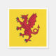 Paper napkin with design with a flag of historic county of Somerset, in England, Great Britain; yellow flag with an illustration of a red dragon in the centre
