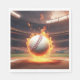 Volando béisbol con llamas en un campo de baloncesto en un fondo de estadio para una fiesta de cumpleaños deportiva.