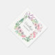 Flores violetas y rosadas, que crean un marco floral de bonito. El nombre de la mujer de cumpleaños está escrito en una letra de guión grande. Le sigue el 40 aniversario. Esta servilleta de cumpleaños es parte de la colección 40th Birthday Dusty Pink and Purple. Contiene muchas plantillas DIY que permiten crear rápidamente invitaciones y suministros de fiesta.