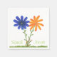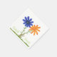 La pintura de una flor de margarita azul y naranja, procedente del mismo centro, se imprime en servilletas bodas personalizadas.
