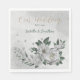 Una servilleta única de papel boda con flores blancas románticas y hojas verdes. PARA OBTENER MÁS PRODUCTOS COINCIDENTES, haga clic en la colección superior o póngase en contacto conmigo.