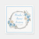 Hermosa servilleta dulce de dieciséis cumpleaños con un polvoriento marco purpurina azul y plata con arreglos florales. Ideal para una fiesta de cumpleaños. Las palabras se pueden cambiar para adaptarlas a sus propios detalles o requisitos