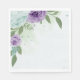 flores románticas azules y violetas hojas verdes papel botánico servilleta