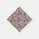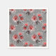 Flores rojas en un fondo gris con puntos de polka blanco.
