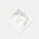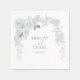 Elegante arco de rosa azul y blanco, rodeado de follaje de color nácar, realza los nombres de la novia y del novio y la fecha de boda en estas servilletas de papel en una variedad de tamaños y estilos. Podrá elegir entre cócteles, almuerzos o cenas y estilo acuático o no acuñado. Esto forma parte de una colección de papel de boda con accesorios bodas a juego. Diseño creado para BarefootBride™ © por WhimsicalArtwork™