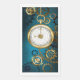 fondo turquesa, texturado, de vapor punk con bronce y oro, llave de plata y reloj. Estilo Steampunk.