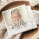 Toallas modernas para fiestas de cumpleaños con una foto personalizado. Reemplace fácilmente la imagen de muestra con una foto del invitado de honor. La palabra "cumpleaños" aparece en un elegante guión de escritura a mano en negro. Personalice el texto con el nombre y el año de cumpleaños en el tipo de letra sans serif negro. Una superposición de degradado blanco ayuda a hacer que el texto aparezca.