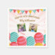 Divertidas, servilletas de papel de cumpleaños festivo con globos rosados, dorados y verdes, streamers y confetti, tus 2 fotos y 2 líneas de texto personalizado. Coloridas, animadas y clásicas - servilletas perfectas para niños y adultos.