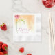 El tallo de Freesia en rosa caliente es de color agua en un lavado de textura con puesta de sol tropical. La tipografía elegante se personaliza elegantemente con las iniciales de la pareja y la fecha boda.