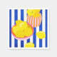 Una vida quieta vibrante con limones amarillos brillantes en tazones rosados y naranjas juguetones. Las audaces rayas azules y blancas de fondo le dan un toque mediterráneo fresco. Un pop de color perfecto para los amantes del cítrico y del arte moderno.