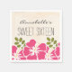 Hermosas servilletas de papel hawaiano con tema isla tropical con flores de hibisco rosa caliente y fucsia con estambres amarillos y helechos verdes. Un aspecto de pergamino crema añade elegancia vintage y un toque de profundidad a esta servilleta de papel de playa con 16 temas de luau y lei. Se puede personalizar con los nombres del chica de cumpleaños que se vuelve dulce 16. Se puede personalizar para cualquier cumpleaños. Pintura © Chrissy H. Studios, LLC. Todos Los Derechos Reservados.