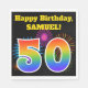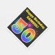 Este divertido y vibrante diseño de servilletas de papel presenta un colorido patrón inspirado en fuegos artificiales de celebración, junto con el número "50" que tiene un arcoiris multicolor como patrón gradiente, sobre un fondo de color negro. También incluye un nombre de personalizable y un mensaje de evento. Las servilletas de papel como esta podrían ser usadas en un fiesta que se celebra el cincuentenario de alguien. [~Z0000326]