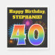 Este divertido y vibrante diseño de servilletas de papel presenta un patrón colorido inspirado en fuegos artificiales de celebración, junto con el número "40" que tiene un patrón gradiente multicolor inspirado en el arcoiris, sobre un fondo de color negro. También incluye un nombre personalizado y un mensaje de evento. Las servilletas de papel como esta podrían ser usadas en un fiesta que se celebra el cuadragésimo cumpleaños de alguien. [~Z0000326]