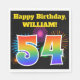 Este divertido y vibrante diseño de servilletas de papel presenta un patrón colorido inspirado en fuegos artificiales de celebración, junto con el número "54" que presenta un patrón gradiente inspirado en el arcoiris multicolor, sobre un fondo de color negro. También incluye un nombre de personalizable y un mensaje de evento. Las servilletas de papel como esta podrían ser usadas en un fiesta que se celebra para celebrar el cincuenta y cuarto cumpleaños de alguien. [~Z0000326]