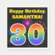 Este divertido y vibrante diseño de servilletas de papel presenta un colorido patrón inspirado en fuegos artificiales de celebración, junto con el número "30" que presenta un arcoiris multicolor como patrón gradiente, sobre un fondo de color negro. También incluye un nombre personalizado y un mensaje de evento. Las servilletas de papel como esta podrían ser usadas en un fiesta que se celebra el trigésimo cumpleaños de alguien. [~Z0000326]