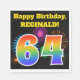 Este divertido y vibrante diseño de servilletas de papel presenta un colorido patrón inspirado en fuegos artificiales de celebración, junto con el número "64" que tiene un arcoiris multicolor como patrón gradiente, sobre un fondo de color negro. También incluye un nombre de personalizable y un mensaje de evento. Las servilletas de papel como esta podrían ser usadas en una fiesta de cumpleaños para celebrar el 64 cumpleaños de alguien. [~Z0000326]