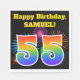 Este divertido y vibrante diseño de servilletas de papel presenta un patrón colorido inspirado en fuegos artificiales de celebración, junto con el número "55" que tiene un arcoiris multicolor como patrón gradiente, sobre un fondo de color negro. También incluye un nombre de personalizable y un mensaje de evento. Las servilletas de papel como esta podrían ser usadas en una fiesta de cumpleaños que se lleva a cabo para celebrar los cincuenta años de alguien. [~Z0000326]