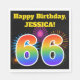 Este divertido y vibrante diseño de servilletas de papel presenta un patrón colorido inspirado en fuegos artificiales de celebración, junto con el número "66" que tiene un patrón gradiente multicolor inspirado en el arcoiris, sobre un fondo de color negro. También incluye un nombre personalizado y un mensaje de evento. Las servilletas de papel como esta podrían ser usadas en un fiesta que se celebra el 66 cumpleaños de alguien. [~Z0000326]