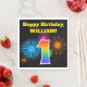 Este divertido y vibrante diseño de servilletas de papel presenta un colorido patrón inspirado en fuegos artificiales de celebración, junto con el número "1" que tiene un patrón de gradiente inspirado en arcoíris multicolor, sobre un fondo de color negro. También presenta un nombre personalizable y un mensaje de evento. Servilletas de papel como esta podrían ser utilizadas en una fiesta que se celebra para conmemorar el primer cumpleaños de alguien.