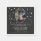 Fun Fact Napkins escribe sobre las servilletas del Graduate Photo Party. Fondo de pizarra gris oscuro con estrellas blancas y una foto personalizado en un marco ovalado. Añada fotos de graduados y datos divertidos sobre el graduado y haga toallas de hechos divertidos para la celebración de la graduación.