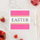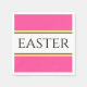 Este diseño divertido y elegante presenta texto EASTER dentro de una amplia franja blanca central realzada con rayas de carreras en negro, amarillo y naranja contra un fondo rosa brillante. El texto se puede personalizar.