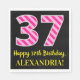 Este divertido diseño de servilletas de papel con temática de cumpleaños presenta un gran número "37", con un patrón de rayas rosa claro y rosa oscuro. También incluye el mensaje "Feliz cumpleaños número 37", y un nombre editable. El fondo es negro de color. Diversión, servilletas de papel de personalizable como esta podrían ser usadas en una celebración que se lleva a cabo para honrar el cumpleaños 37 de alguien. [~Z0000380]