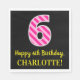Este divertido diseño de servilletas de papel con temática de cumpleaños presenta un gran número "6" con un patrón de rayas rosas oscuras y rosas claras, junto con el mensaje "Feliz sexto cumpleaños", y un nombre de personalizable. El fondo es negro de color. Las toallas de papel divertidas y personalizadas como esta pueden ser usadas en una celebración de cumpleaños que se lleva a cabo en honor al sexto cumpleaños de alguien. [~Z0000380]