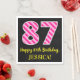 Este divertido diseño de servilletas de papel con temática de cumpleaños presenta un gran número "87", con un patrón de rayas rosa oscuro y rosa claro. También incluye el mensaje "Feliz cumpleaños número 87", y un nombre personalizado. El fondo es negro de color. Las servilletas de papel temáticas de cumpleaños como esta pueden ser divertidas de usar en una celebración que se lleva a cabo para honrar a alguien que está celebrando su cumpleaños número ochenta y siete. [~Z0000380]