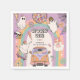 Retro Spooky Un primer cumpleaños Fiestas Napkins- ¡Vamos Groovy! El diseño presenta un fondo colorido con un arcoiris boho. ilustraciones retro de Guay decoran el sencillo patrón con adorables fantasmas hippies, flores de cráneo, espeluznante bola de disco y dulces espantaculares.